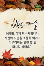 10¿ùÀÇ ¸¶Áö¸·ÀÔ´Ï´Ù. ¸¶¹«¸® ÀßÇϽðí, »õ·Î¿î 11¿ùÀ» ±â»Ú°Ô ¸ÂÀ¸½Ã°í ÇູÇÏ°Ô º¸³»¼¼¿ä~^^