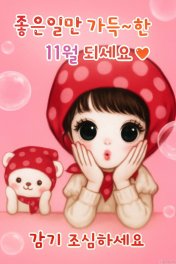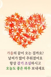 ´ÜdzÀÙ °ö°Ô ¹°µç 10¿ùÀÌ ¿ì¸® °çÀ» ¶°³¯ äºñ¸¦ ÇÕ´Ï´Ù. ÇÑÀÙÇÑÀÙ ³«¿±°ú À̺°ÇÏ¸ç °Ü¿ïäºñÇÏ´Â ³ª¹«Ã³·³ 10¿ùÀ» ¾ËÂ÷°Ô ¸¶¹«¸®ÇϽðí, ±â»Û ¸¶À½À¸·Î 11¿ù ¸ÂÀ¸½Ã±â ¹Ù¶ø´Ï´Ù. ½Ò½ÒÇÑ ³¯¾¾¿¡ °Ç° Á¶½ÉÇϽðí, ¸ÅÀϸÅÀÏ ÇູÇϽñ⠹ٶø´Ï´Ù.